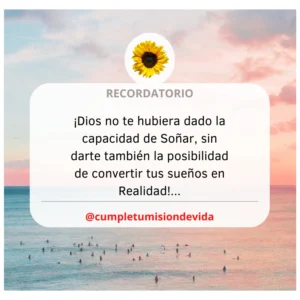 👉🏻 Un sueño, no es un deseo. Es una aspiración constante e intensa. Es algo que nace en tu corazón. Todas tus aspiraciones vinieron antes que fueras concebido. Cada uno nace con esa semilla en su corazón, conforme a la misión que Dios te asignó.